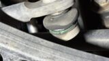 リフトアップした状態の写真が以下です。マフラーの右側に緑色の汚れがあるのが見えます。これが冷却水(BMWではアンチフリーズクーラントと呼ばれています)です。