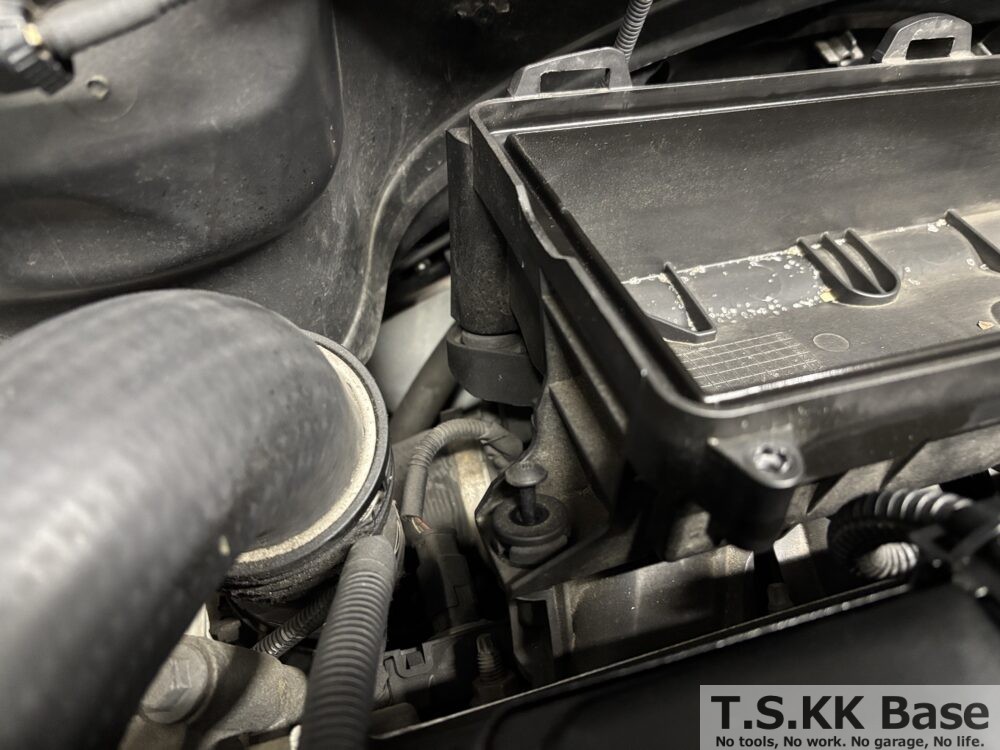 エアクリーナーBOXを固定しているT25のトルクスビスを緩めてエアクリーナーBOXを動かせるようにします。