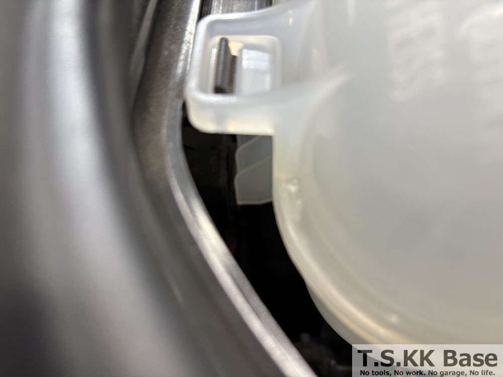車両側のリザーバータンク保持部(凸部分)にリザーバータンクを合わせます。